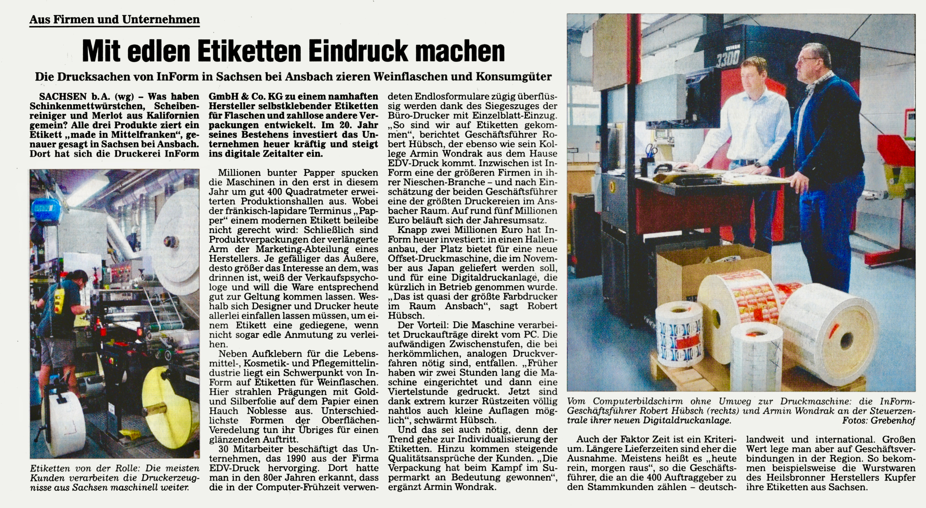 Vertrauen Sie einer erfahrenen und vielfach ausgezeichneten Fachdruckerei mit über 30 Jahren Erfahrung und Historie! Mit Leistungen, die individuell auf Ihre Bedürfnisse und Wünsche abgestimmt sind. Mit unterschiedlichen Drucktechniken, die jeweils perfekt auf Ihre Etikettenanforderungen passen. Mit speziellen Veredelungs- und Prägemöglichkeiten, die Ihrem ästhetischen und marketingtechnischen Anspruch gerecht werden. Mit einem differenzierten Leistungsspektrum, bei dem Sie alles aus einer Hand bekommen. Mit engagierten und leidenschaftlichen Mitarbeiterinnen und Mitarbeitern, die in jedem Bereich spezialisierte Fachleute sind, für perfekte Ergebnisse stehen und Etiketten leben. Und mit einer Effizienz, die nicht nur günstige Preise ermöglicht, sondern auch verlässliche Termine sicherstellt.